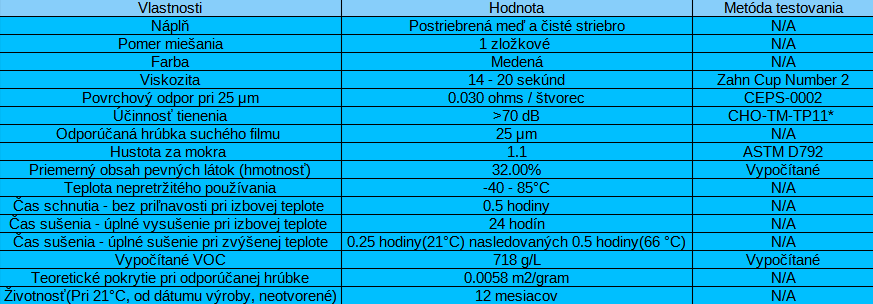 Elektricky vodivý postriebrený medený akrylový povlak proti elektromagnetickému rušeniu.